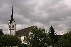 From the 2000 census, 1,132 or 54.4% are Roman Catholic, while 602 or 29.0% belonged to the Swiss Reformed Church. Of the rest of the population, there is 1 individual who belongs to the Christian Catholic faith, there are 9 individuals (or about 0.43% of the population) who belong to the Orthodox Church, and there are 68 individuals (or about 3.27% of the population) who belong to another Christian church. There are 29 (or about 1.39% of the population) who are Islamic. There are 7 individuals (or about 0.34% of the population) who belong to another church (not listed on the census), 185 (or about 8.90% of the population) belong to no church, are agnostic or atheist, and 46 individuals (or about 2.21% of the population) did not answer the question.[8]