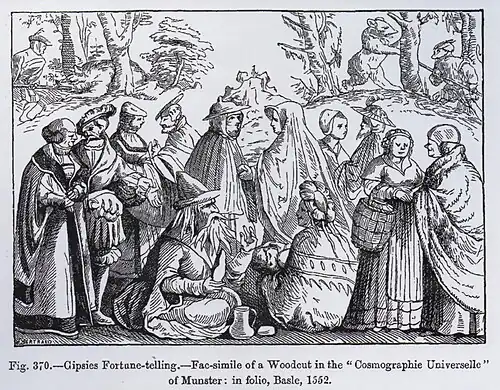 There is no concrete and reliable evidence regarding the initial arrival of Egyptians (referring to people called Egyptians, not natives of the country Egypt) in England. However, it is thought that Egyptians first arrived in the early 16th century, during the reign of Henry VII, the first Tudor. The content of gentry books owned by Sir John Arundell of Lanhere, mention him paying a fee of 20d to "the Egyptians when they danced afore me".[3] This instance occurred in 1504. The first mention of Egyptians in English publication was in 1529. A keen analysis of Thomas Moore's Dialogue Concerning Heresies, published in 1529, alludes to the presence of a fortune-teller lodging in Lambeth, "an Egyptian", who was never known by name. This wise-woman used palmistry in her fortune telling.[4]