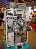 The idea for the original Eidophor was conceived in 1939 in Zürich by Swiss physicist Fritz Fischer, professor at the Labor für technische Physik of the Swiss Federal Institute of Technology, with the first prototype being unveiled in 1943.[1] A basic patent was filed on November 8, 1939, in Switzerland[2] and granted by the United States Patent and Trademark Office (patent no. 2,391,451) to Friederich Ernst Fischer for the Process and appliance for projecting television pictures on 25 December 1945. During the Second World War, Edgar Gretener worked together with Fischer at the Institute of Technical Physics to develop a prototype. When Gretener launched his own company Dr. Edgar Gretener AG in 1941 to develop enciphering equipment for the Swiss army, he stopped working on Eidophor. Hugo Thiemann took over this responsibility at the ETH.[3] After six years of work on this project at the ETH, Thiemann moved together with the project to the company Dr. Edgar Gretener AG, which was licensed by the ETH to further develop Eidophor, following Fischer's death in 1947.[3] An original August 1952 magazine article in the Radio and Television News[4] credits the development of the Eidophor to Edgar Gretener.