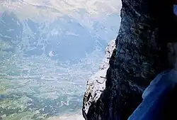 Eigerwand is a disused underground railway station in the municipality of Grindelwald in the canton of Bern, Switzerland. It is on the Jungfrau railway, which runs to the Jungfraujoch from Kleine Scheidegg. The station is located just behind the north wall of the Eiger and its principal purpose was to allow passengers to observe the view through a series of windows carved into the rock face. Trains to Jungfraujoch used to stop at the station for a few minutes for this purpose, but those descending to Kleine Scheidegg did not stop.[1][2][3][4]