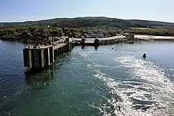 Eilean Ceann na Creige is connected to Kennacraig by a causeway. It is the mainland terminal of the ferry to Islay,[3] Jura and Colonsay.