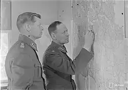 ![]() Mäkinen (right) inspecting a map in 1941 | |