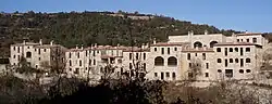 The village fell into disuse, and its buildings into ruins, during the 20th century, and the entire area, including over 150 hectares of surrounding land, was eventually bought by Barcelona businessman Emili Vives in 1995, with the intention of restoring it and turning it into a naturist centre.[4] During the construction, Vives met with much obstruction from local and regional officials, but persisted with the project and succeeded in rebuilding almost all of the buildings, using the original limestone blocks.[5][6]