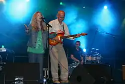 Elaine Morgan (born 1960, Cardiff) is a Welsh folk singer. She was a member of Dan Ar Braz's group L'Heritage des Celtes, and often sang lead vocals, either alone or jointly with Karen Matheson. Morgan and Matheson received much acclaim for their performance on the Breton-language song Diwanit Bugale, France's entry to the Eurovision Song Contest 1996. Formed her own folk-rock band Rose among Thorns together with her husband Derek and produced several albums throughout the nineties. Currently involved in the running of the Rumney Folk Club in Cardiff. Has also worked with members of Fairport Convention and featured with them at their annual Cropredy gathering.