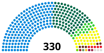 | Bangladesh Nationalist Party | 7,934,236 | 41.17 | 207 | 30 | 237 | New | ||