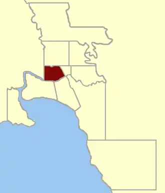 The Electoral District of West Melbourne was defined as being bound by the Yarra River on the south, Elizabeth Street on the east, Victoria Street on the north and "the western boundary of the city" by the 1858 Electoral Districts Act.[1]