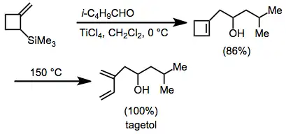 Addition of an allylsilane to an aldehyde is used in an efficient synthesis of tagetol.[22]