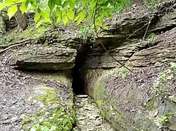 The stoopway entrance that is 4.5 feet (1.4 m) high and 2.5 feet (0.76 m) wide leads to a forty-foot passage into a fairly normal limestone crawlway conduit cave.[4] It is the only known habitat for the Louisville cave beetle, which is listed as a candidate for endangered species status.[5]