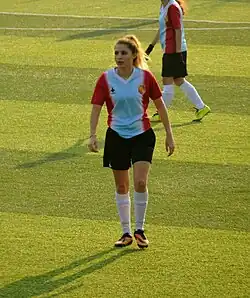 She made her first appearance in the women's national team on 3 February 2010 playing in a friendly match against the Russian team.[8] She participated in the qualifying round matches of UEFA Women's Euro 2013 qualifying – Group 2 and 2015 FIFA Women's World Cup qualification – UEFA Group 6. As of 19 June 2014 she capped 7 times in the national team.[1]