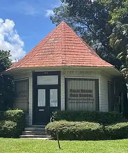By the 1900s decade, George Potter, formerly a county surveyor who mapped and surveyed the original 48 blocks of West Palm Beach in 1893, became president of the bank,[13] which moved into a different building around 1903. After the establishment of Palm Beach County in 1909, the bank was renamed Pioneer Bank and later the First National Bank of West Palm Beach.[14] Since the late 1970s, the original building has been located at 401 N. Flagler Drive. While several other tenants occupied the building over the years, including a novelty and trick shop for more than 40 years, the former bank currently houses memorabilia for Palm Beach High School. In 2018, city commissioners approved a proposal to add the structure to the West Palm Beach Registry of Historic Buildings. The former bank is considered the oldest commercial building in Palm Beach County.[12]