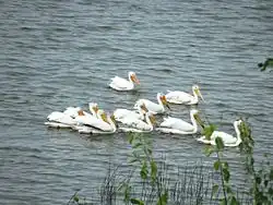 Elk Island is home to the densest population of ungulates (hoofed mammals) in Canada. A variety of mammal species including coyote, bison, moose, mule deer, lynx, beaver, elk, white-tailed deer, and porcupine are year-round residents. Black bears and timber wolves certainly roam within this park, but they are not commonly seen by wildlife viewers.[7][8] Over 250 bird species can be found in the park at various times of year. Most notable among these are the red-necked grebes, American white pelicans, double-crested cormorants, great blue herons, red-tailed hawks, American bitterns and the trumpeter swans.