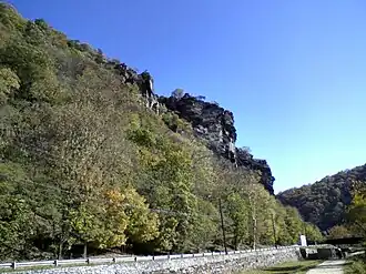 A trail system, maintained by the National Park Service, ascends Maryland Heights and tours the Civil War-era fortifications and provides access to the cliffs on the mountain which contain views of Harpers Ferry and the Potomac Water Gap. An unmaintained trail leads along the ridge of Park Service land onto private property to Buggy Rocks and views east of Pleasant Valley. Mountain climbing is permitted by the National Park Service along the Maryland Heights cliffs.