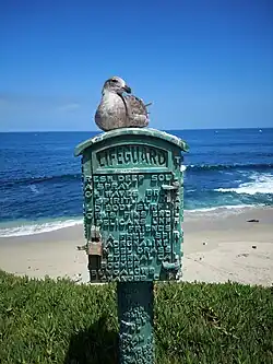 In 1995, a lifeguard call box in the park designed in bronze by artist Paul Sibel was added above Boomer Beach to honor a beloved waterman and body surfer, David C. Freeman. Benches with small commemorative plaques are located above the ocean bluffs.