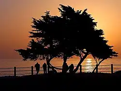 Point La Jolla, a rocky point jutting out from the region's generally smooth and dangerous lee shore, had special significance to the Kumeyaay, who continue to refer to the area as the "Holy Land."[6] It is a site like Point Conception, a headland in Santa Barbara County that is said to be sacred to the Chumash people, the “Western Gate” through which the souls of the dead could pass between the moral world and the heavenly realm.[7] The Acjachemen similarly may have attached significance to Dana Point.[8]