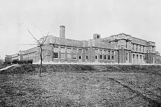 In the 1910s, the population of Pontiac expanded from the core of the city outward, requiring the construction of neighborhood elementary schools to service the influx of population. Seminole Hills, on the west side of the city, was developed in 1916, and the school district acquired land in the area to construct this school. The Pontiac school district hired the Chicago architectural firm of Perkins, Fellows and Hamilton, who had designed two previous schools in Pontiac, to design the new school. Work began in 1920, and the school was opened in 1921. An addition, also designed by Perkins, Fellows and Hamilton, was constructed the next year.[2]