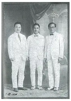 Quirino, Sabino Padilla, and Jose P. Laurel, part of UP Class 1915, photographed in 1924