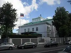 The Embassy of Russia in Copenhagen is the diplomatic mission of the Russian Federation to the Kingdom of Denmark. The chancery is located at Kristianiagade 5 in Indre Østerbro, Copenhagen, and is a heritage listed building.