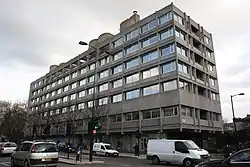 The Embassy of Czechoslovakia was originally located on Grosvenor Place, before moving to the location of the current Czech and Slovak embassies in 1970.[2] The construction of a new brutalist-style building at this site had begun in 1965 and was undertaken by Jan Bočan, Jan Šrámek and Karel Štěpánský from the atelier Beta Prague Project Institute; it received an award from the Royal Institute of British Architects for the best building in the United Kingdom created by foreign architects.[2] The building was then divided between the Czech Republic and Slovakia following the dissolution of Czechoslovakia in 1993.