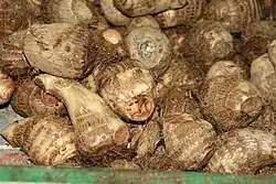 The process of growing taro is not labor intensive and could have easily replaced rice as a main carbohydrate.[11] Planting and farming Taro is a ceremonial process and has religious significance.[11] In the Central Cordillera region, taro was a favored crop because of its low-population destiny.[11] It is possible that there was not much population pressure in the Cordillera before the rise of colonialism and that taro and other root vegetables like sweet potato could have supported the populations present at the time.[11] It is a possibility that as population density increased as a result of the Spanish arrival or after the arrival of lowland groups, there was a change to wet-rice agriculture.[11]