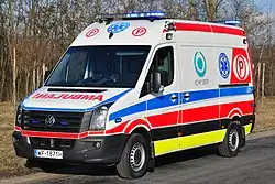 Poland has voluntarily adopted the majority of the specifications for ambulances of European Standard CEN 1789.[6] Ambulances and equipment used do comply with the technical standards outlined. While design and technical standards are voluntarily complied with, there is virtually no compliance with the visual identity standards described in the Standard. There are also no immediate plans to do so. While plans are in place for the restructuring of some aspects of the EMS system, these are mostly related to staffing configurations and deployment, which are not covered by the technical Standard. It appears unlikely that the proposed changes will have any effect on Standard compliance.