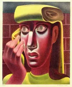 On his return to New York a few years later he became a teacher at the Florence Cane School of Art, executed murals for the Works Progress Administration, and experimented with photography and filmmaking. He developed a friendship with the poet Federico García Lorca, who wrote a script for a Dada-esque Amero film entitled Viaje a la Luna (Trip to the Moon).[2][3] He also had his first solo show at the Julien Levy Gallery and subsequently helped Henri Cartier-Bresson exhibit there.