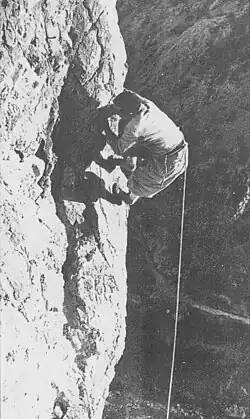 Leonardo Emilio Comici (21 February 1901 – 19 October 1940) was an Italian mountain climber and caver.[1][2][3] He made numerous ascents in the Eastern Alps, particularly in the Dolomites (where he made over 200 first ascents during his career) and in the Julian Alps.[2][3][4] Comici was nicknamed the "Angel of the Dolomites".[2][3][5]
