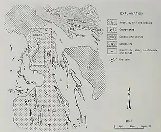 - ^ a b c d Johnston, W.D., 1940, The Gold Quartz Veins of Grass Valley, California, USGS Professional Paper 194, Washington:US Government Printing Office