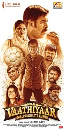 En 6 Vaathiyaar Kaalpanthatta Kuzhu (transl. My 6-man football team) is a 2023 Indian Tamil-language sports film written and directed by S. Hari Uthraa. The film stars S. Sharath Kumar, Ayraa Jain, Ganja Karuppu, Sona Heiden, Madhan Dakshinamoorthy, and Gajaraj. The film was produced by S. Hari Uthraa and Dr. S. Prithi Shankar. under the banners of Uthraa Productions and PSS Productions, respectively.[1] The music was composed by AJ Alimirzaq, and the film released on 15 September 2023.