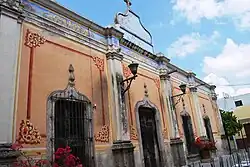 On the opposite side of the plaza is the municipal palace. This building was constructed in 1759 originally as a royal treasury (casa real). Later it became a municipal jail.[3][6] After Independence, it was renovated to become the main governmental building. It is Neoclassical in design and it has unique arches in the front, which were roofed in 1834.[3] There is also a mural dedicated to the Cristero War.[7]
