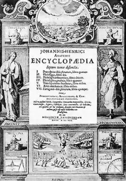 Johann Heinrich Alsted published the Encyclopaedia in seven volumes in 1620[1] in Herborn. It is often argued that this is the first work to bear the title "encyclopedia", though Joachim Sterck van Ringelbergh's Lucubrationes vel potius absolutissima kyklopaideia was published in 1538, and Paul Scalich published Encyclopediae seu orbis disciplinarum tam sacrarum quam profanarum epistemon in 1559.