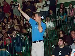 In February 2013, the Enfield Board of Education voted for the Eagle to be the consolidated high school's new mascot. A survey was taken of 1,500 students from Enfield High School, Fermi High School, and John F. Kennedy Middle School as an opinion to influence a final decision to be made by the Board. As a result of the survey, top choices for mascots were the Falcon, Eagle, and Spartan. Top color choices were and blue/gold and black/green/gold, which the school board favored and subsequently adopted.[19] The decision for the Eagle was influenced by the presence of American bald eagles on the property, which occasionally make an appearance during sporting events and school gatherings.[20]