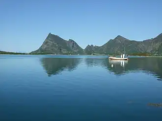 Engeløya[1] is an island in the northern part of Steigen Municipality in Nordland county, Norway. The island has an area of 69 square kilometres (27 sq mi). The highest point on the island is the 649-metre (2,129 ft) Trohornet mountain. The rocky, mountainous island has grassy slopes that are fertile and it has some of the better farmland in the municipality. The island sits in the entrance to the Sagfjorden, just south of the island of Lundøya.[2]