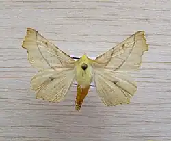 Ennomos alniaria, the canary-shouldered thorn, is a moth of the family Geometridae. The species was first described by Carl Linnaeus in his 1758 10th edition of Systema Naturae. It can be found in Europe in a wide variety of biotopes where there are deciduous trees, perhaps mostly in deciduous forests and gardens.