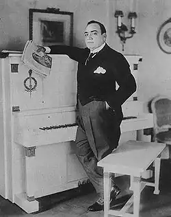 From 1897 to 1908, Caruso had been romantically linked to an Italian soprano, Ada Giachetti.[27] Although she was already married (there was no divorce in Italy at that time), Giachetti bore Caruso four sons during their liaison, two of which survived infancy: Rodolfo Caruso (1898–1951) and singer/actor Enrico Caruso Jr. (1904–1987). Giachetti had left her husband, manufacturer Gino Botti, and an existing son to cohabit with the tenor. Information provided in Scott's biography of Caruso suggests that she was Caruso's vocal coach as well as his lover.[28] Statements by Enrico Caruso Jr. in his book tend to substantiate this.[29][30] Caruso and Giachetti separated in 1908, after she began a love affair with Cesare Romati, the tenor's chauffeur. Giachetti's subsequent attempts to sue Caruso for damages were dismissed by the courts.[31]