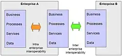 - Interoperability concerns define the content (or aspect) of interoperation that may take place at various levels of the enterprise. In the domain of Enterprise Interoperability, the following four interoperability concerns are identified: data, service, process, and business.[6]