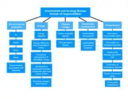 As shown in figure 1, the environment and ecology bureau is further split into 5 separate domains including environmental protection, Energy, Climate Change, Conservation, and Sustainable Development.[6]