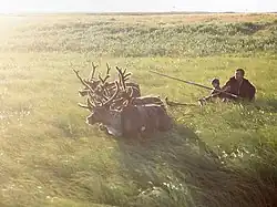 On April 11, 2014, the Izhma district council passed a resolution to support a complete shutdown of oil and gas operations in the area.[25] The decision was in part due to concerns over economic effects on reindeer herding; the residents of Izhma, many of whom are Izvatas, are part of the only subgroup within the Komi Indigenous people who still practice this livelihood.[25] In particular, concerns were sparked by the discovery of new drilling rigs in close proximity (200 meters) to the village of Krasnobar, which had been installed without prior notice, permission, or consent of Izvatas communities or Izhma district administration, in contravention of environmental legislation.[19][25] 150 people, representing twelve settlements, gathered for the vote, held in Krasnobar village; the Izhma district council voted unanimously in favor.[25]