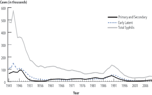 Syphilis—Reported Cases by Stage of Infection, United States, 1941–2009.