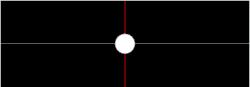Simulated view of an object in an elliptic orbit, as seen from the focus of the orbit. The view rotates with the mean anomaly, so the object appears to oscillate back and forth across this mean position with the equation of the center. The object also appears to become smaller and larger as it moves farther away and nearer because of the eccentricity of the orbit. A marker (red) shows the position of the periapsis.