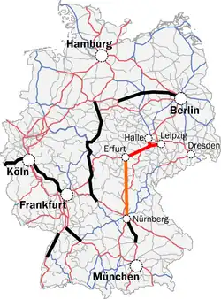 - ^ Projektzentrum Erfurt, ed. (1995). ABS / NBS Nürnberg-Erfurt-Leipzig/Halle-Berlin (PDF, 2.1 MB) (in German). Planungsgesellschaft Bahnbau Deutsche Einheit. (15-page brochure, status of January 1995)