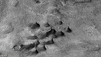 - ^ Morgan, G.A.; Head, J.W.; Marchant, D.R. (2009). "Lineated valley fill (LVF) and lobate debris aprons (LDA) in the Deuteronilus Mensae northern dichotomy boundary region, Mars: Constraints on the extent, age and episodicity of Amazonian glacial events". Icarus. 202 (1): 22–38. Bibcode:2009Icar..202...22M. doi:10.1016/j.icarus.2009.02.017.