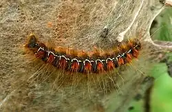 - ^ Ruf, Claudia; Fiedler, Konrad (December 2002). "Tent-based thermoregulation in social caterpillars of Eriogaster lanestris (Lepidoptera: Lasiocampidae): behavioral mechanisms and physical features of the tent". Journal of Thermal Biology. 27 (6): 493–501. Bibcode:2002JTBio..27..493R. doi:10.1016/S0306-4565(02)00022-0.