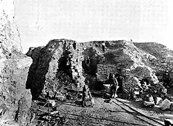 The conference was held from December 1 to 6, 1889. Schliemann was in the Çanakkale from the beginning of November, the work was actually supervised by the tentmaker Yannis Laloudis, renamed Laomendonta. For the needs of the construction, the Societe Decauville Ain & in Evry-Petit-Bourg purchased hand minecarts, two railroad switches and two bar gates, as well as 300 meters of narrow gauge rail. Here Boetticher, who had insisted that the conference be conducted by third parties and not by Dörpfeld or Schliemann,[35] suddenly became indignant. Despite the autumn storms, he arrived at the excavations on November 30, accompanied by Niemann and Steffen; Dörpfeld, who had shown the ruins of Olympia to high-ranking visitors, had managed to arrive three days earlier.[36] The beginning of the conference showed that Boetticher was ignorant of archaeology and confused about terminology. He did not believe that crushed mussel shells had been added to the raw material for adobe bricks, and he was incredulous at Schliemann's explanation that at the beginning of the excavations he had referred to all the vessels found as "urns". Virchow also complained that Schliemann had misused the simple German word Asche or Ashes in his first publications, thus unwittingly misleading Boetticher. On December 4, the delegates dined at Calvert's in Timbre, and during the reception Ernst Bötticher suddenly announced that he would leave the excavation on December 5. He took soil samples and, under pressure from Steffen and Niemann, signed a report stating that what he had seen at the excavation matched the descriptions in Schliemann's articles and books.[37] Boetticher was extremely unhappy with his trip; his own version of events was rejected by scholarly publications and was not published until a book in 1911. Niemann and Steffen gave a press conference in Constantinople on December 10, stating that there had been a human settlement at Troy, not a "fiery necropolis". On December 19, while still in Constantinople, Boetticher issued his own communiqué in which he denied the charge that Dörpfeld had falsified the findings, but expressed dissatisfaction that his own theories had been declared unfounded. In addition, he claimed that his expenses for the trip amounted to 2000 marks and demanded that Schliemann reimburse him for the difference. Schliemann wrote to Virchow that "the scoundrel would not receive a single pfennig" in addition to the thousand already sent to him. Virchow replied that Boetticher's cynicism bordered on insanity and advised him to completely ignore any demands.[38]