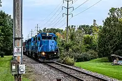 In 1985, the first EMD diesel, a GP-38 (E&LS 400) was purchased, followed shortly by additional GP-38s (ex-Conrail ELS 401 & 402) and 4 SD9s (1220-1224).[72] In 2003, the railroad bought two SD-40-2s (ex-Electro-Motive Diesel Leasing E&LS 500 & 501), and, unusually, an FP7 (ELS 600) two years later. The FP7 was originally a Milwaukee Road FP7, then was bought by the Wisconsin Southern, and sold to the E&LS. The SD9s except for 1223 and 1221 have been retired as of 2025. 1223 still operates in Wells and Escanaba, but it has been restricted from mainline service. This engine can regularly be seen switching out E&LS customers in that area, and at the maintenance facilities in Escanaba & Wells.