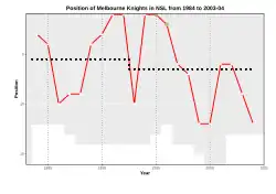 In 1984, after a number of years of lobbying, the Knights finally joined Australia's elite soccer competition, the National Soccer League. By the 1990s, the club had become the premier soccer club in Australia as it made the NSL Grand Final in 5 out of 6 seasons, winning it twice, in 1994–95 and 1995–96. Following the disbanding of the NSL in 2004, the Knights dropped to the Victorian Premier League, making the Grand Final in 2008. The Knights won the Dockerty Cup in 2014, the club's first piece of major silverware in 18 years.[2]