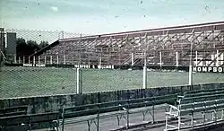 The club acquired land in Vicente López Partido to build a stadium there in 1947. Three years later, C.A. Platense obtained a loan to build a stadium made of concrete, inspired by Club Atlético Huracán's venue, Estadio Tomás Adolfo Ducó. The stadium would host 60,000 spectators.[3] Nevertheless, the project was dismissed in 1955, when after the Revolución Libertadora, a military government took the power in Argentina. In 1965, the club refurbished the stadium, expanding the field dimensions to 110 x 70 m, and demolishing the velodrome. In 1971, the club was in a deep financial crisis and had to leave the land on Manuela Pedraza and Crámer. The last match played there was on September 26, when Platense beat Newell's Old Boys 2–0.[2]