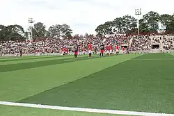 In September 2019, the stadium lighting system was installed for the holding of night games. In October of the same year seating in the stadium was completed.