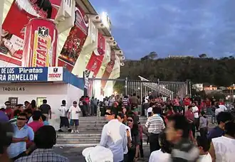 Estadio Nelson Barrera Romellón is a stadium in Campeche, Mexico. It is primarily used for baseball, and is the home field of the Piratas de Campeche (Campeche Pirates) Mexican League baseball team.[2] It holds 4,190 people.[1] It is named for Campeche native and Mexican League home run and RBI record setter Nelson Barrera. It was built in the same location as the former Estadio Venustiano Carranza (originally built 28 December 1958), which had served as the home field for the Pirates from 1980 through 1997.[3] For the 1998 through the 2000 seasons the Pirates played out of the 3,000 seat Estadio Leandro Dominguez in the Santa Lucia neighborhood of the city of Campeche.[3] Estadio Nelson Barrera Romellón was opened on 22 May 2001 with a victory of the Pirates over the visiting Olmecas de Tabasco.[2]