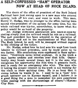 - ^ Auston, J. R. T., ed. (December 14, 1895). "Evolution of a Ham". The Railroad Telegrapher. Vol. 19, no. 12. Peoria, IL: The Order of Railroad Telegraphers of North America. p. 187. Retrieved January 15, 2020.