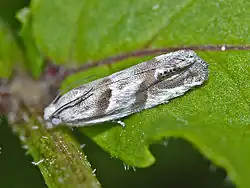 The wingspan is 14–19 mm.[2] Adults have been recorded on wing from July to August in Europe.